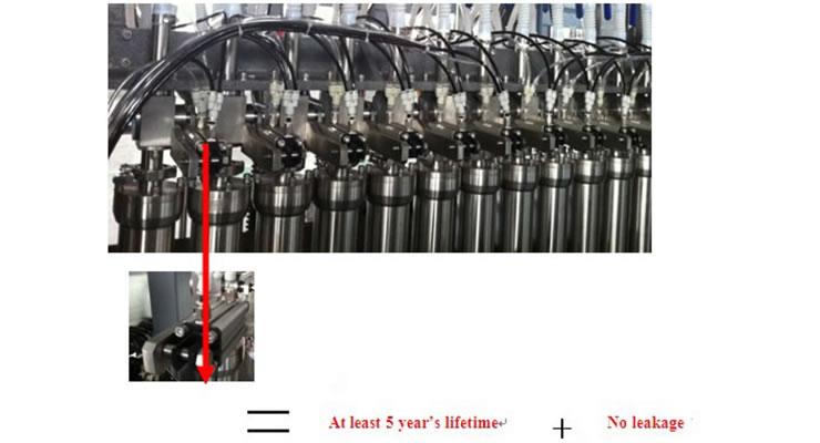 1. Высокая точность розлива благодаря модулю ПЛК. Регулируемые параметры объёма, скорости наполнения и т.д. Направляющие колонны и подъёмные балки соединяются раздельными шарико-винтовыми парами.