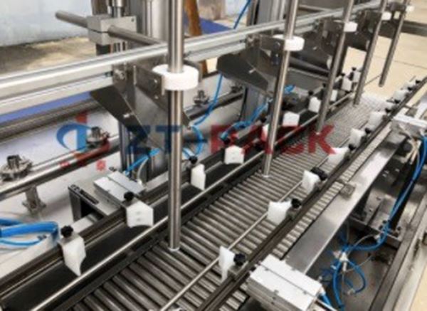 Специально разработанные заполняющие головки с функцией отсутствия утечек контролируются электромагнитным клапаном, который гарантируют высокую степень точности наполнения емкостей. Высота наполняющих головок регулируется посредством регулировочной ручки, что позволяет использовать их для емкостей разной высоты и вместимости. Объем заполнения также может быть отрегулирован в соответствии с требованиями заказчика. Процесс заполняется приостанавливается при отсутствии емкостей для заполнения.