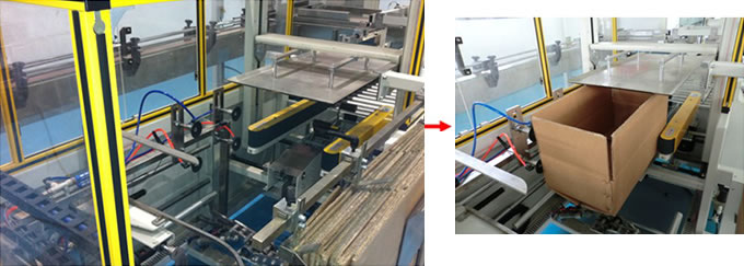 Представленное оборудование для упаковки в картонную коробку позволяет выполнять такие действия, как открытие коробок, фасовка стеклянных или пластиковых бутылок вовнутрь и запечатывание наполненных коробок. Данное упаковочное оборудование можно использовать для расфасовки продукции в пищевой, фармацевтической, косметологической и химической промышленности.