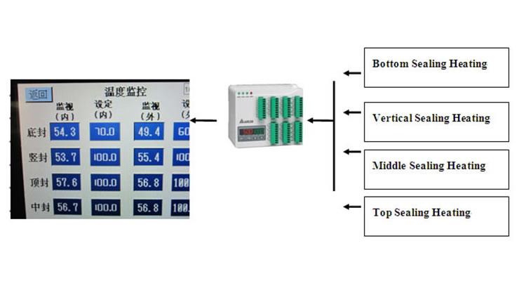 Температура каждого блока нагрева контролируется ПЛК, благодаря чему обеспечивается точность и стабильность температурных режимов. Параметры нагрева удобно регулируются при помощи сенсорного экрана.