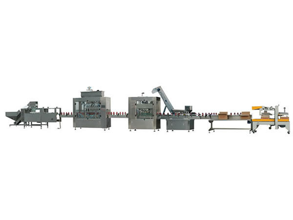 Линия розлива бытовой химии для жидкостей низкой вязкости предназначена для фасовки в тару объёмом до 1000 мл. Состоящая из автоматического ориентатора бутылок, машины для розлива, роторной укупорочной машины и этикетировочной машины для нанесения бумажной и самоклеющейся этикетки, данная фасовочная линия осуществляет все процессы упаковки в автоматическом режиме. Точная и производительная разливочная машина может работать с такими видами продукции, как моющие средства, жидкое мыло, шампуни и т.д.